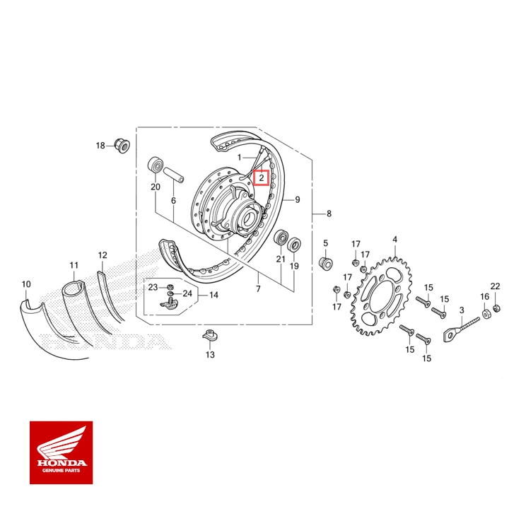 HONDA Original eger sæt baghjul, f. (b10x123.0) yderside CRF125